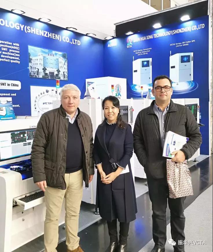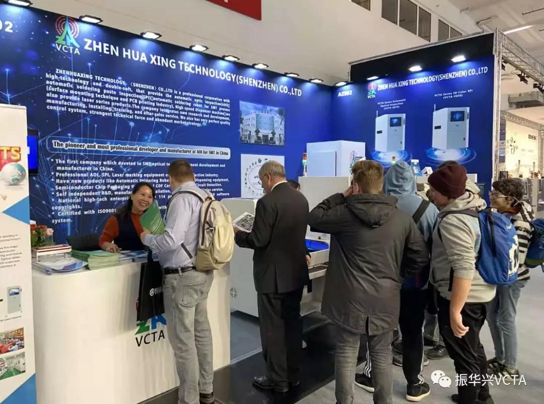 Zhenhuaxing, as the leading and well-known brand in SMT testing field in China, we brought four best-selling machines to Munich exhibition : Online visual optical detection equipment AOI (VCTA-S810) , Offline optical detection equipment VCTA-Z5X, 3D color paste detection equipment SPI (VCTA-V850), Laser engraving machine LC800 , and we are under evaluation and compare with the world's top intelligent equipment brands as OMRON, YAMAHA, CYBER OBITCS, MIRTEC, VISCOM, SAKI, and VCTA machines attracted many potential agents and customers from Russia, Spain, Bulgaria, the UK, Greece, Turkey, the Netherlands, New Zealand, etc. Our colleagues have deep communication with these overseas friends on booth.